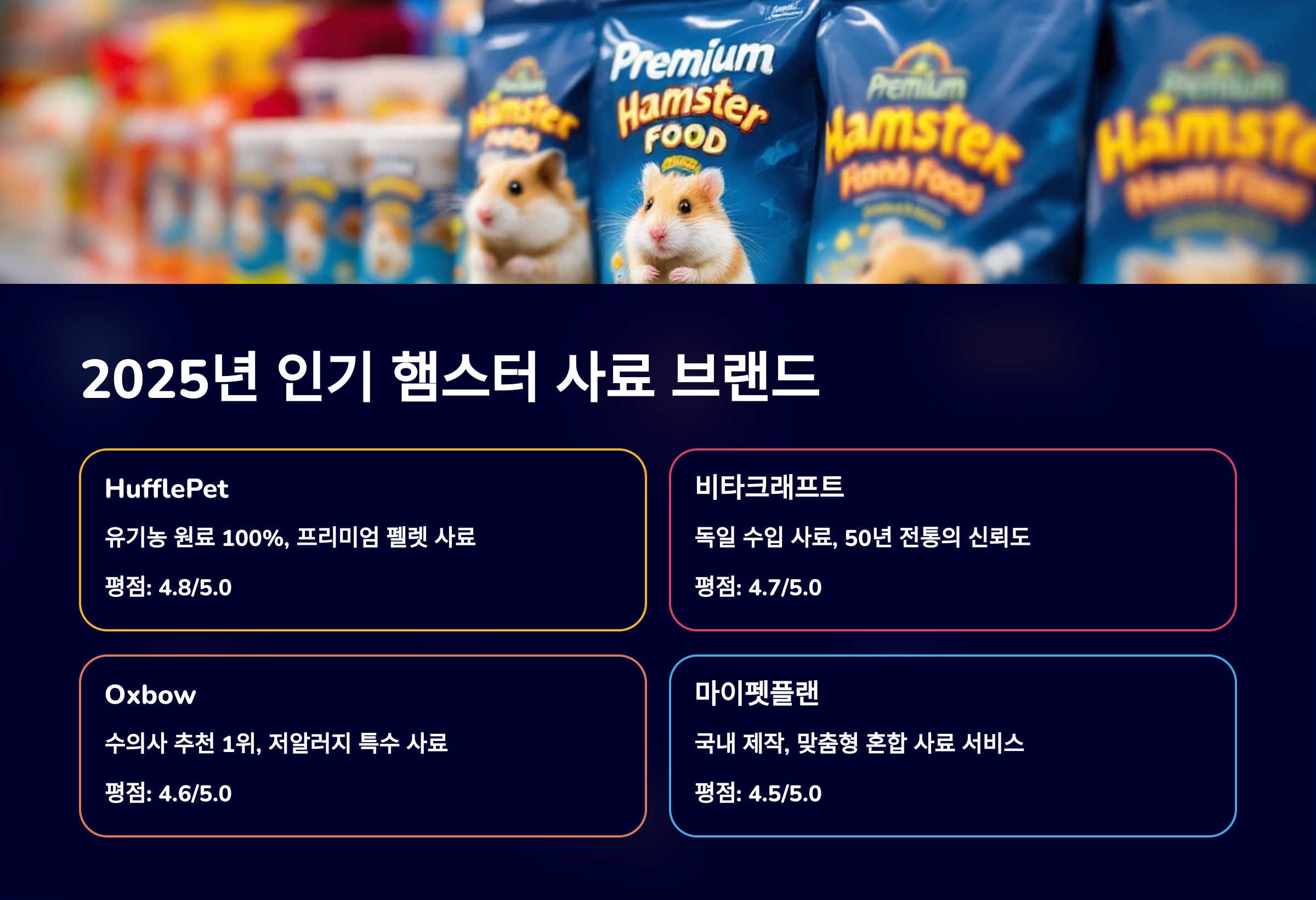 2025년 현재, 햄스터 사료 시장은 품질과 영양 균형을 모두 고려한 다양한 브랜드가 인기를 끌고 있어요.