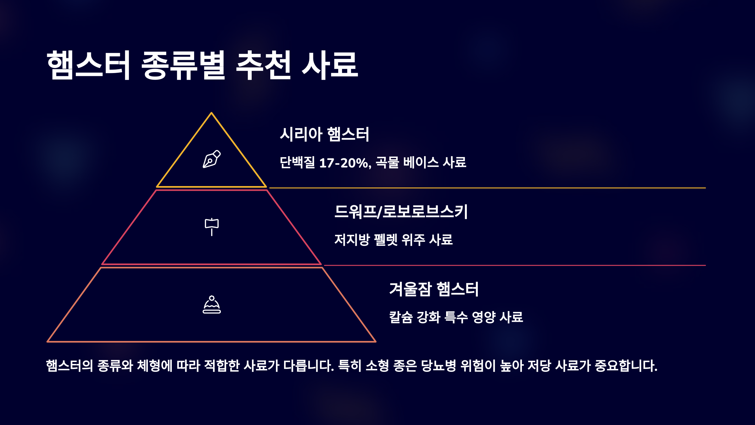 햄스터마다 몸에 맞는 사료를 급여하면 건강 문제를 예방할 수 있어요. 🐾 우리 햄스터의 특성을 이해하고, 딱 맞는 사료를 골라주는 것이 최고의 사랑이에요!