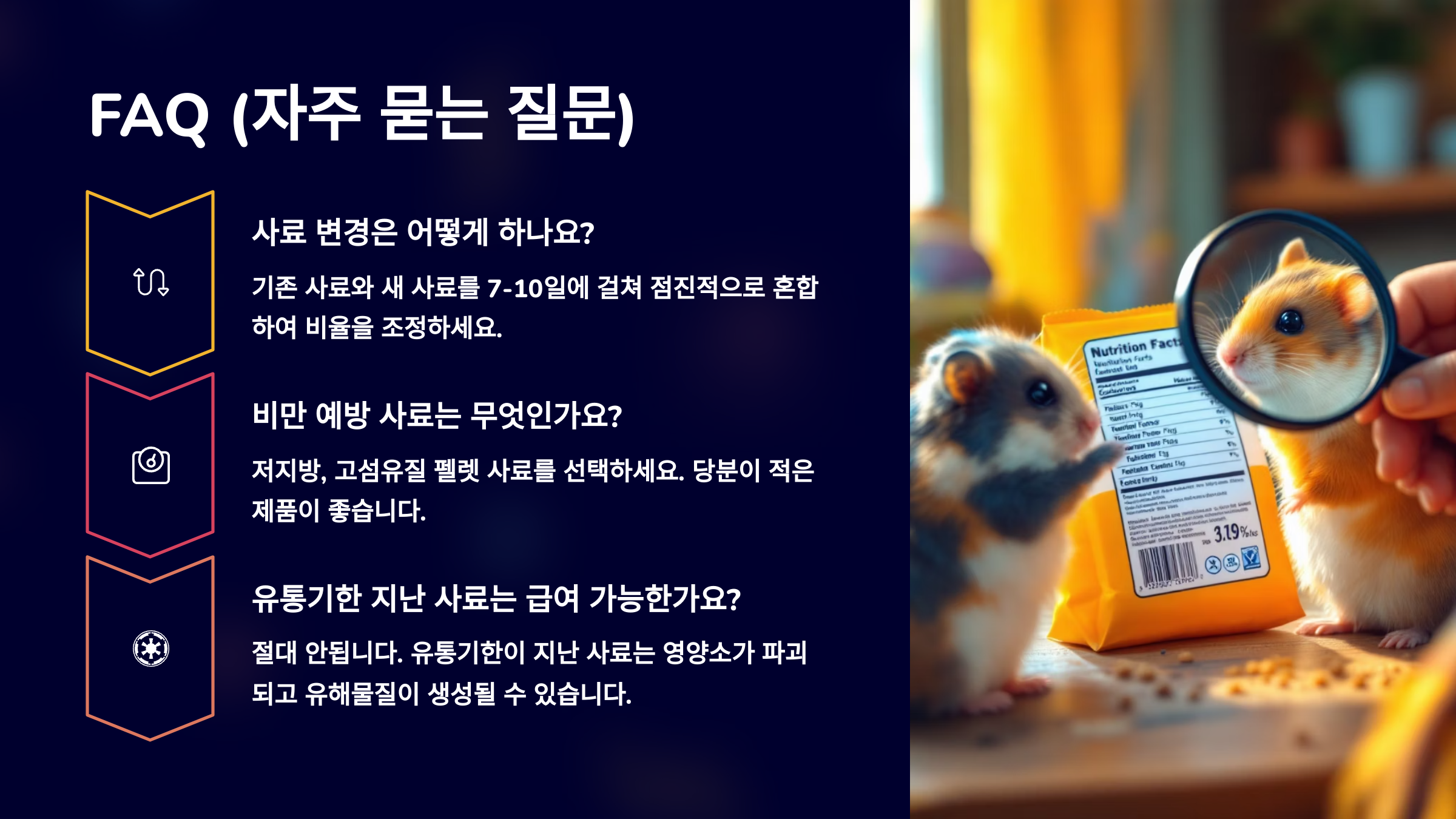 2025년 현재 사료 시장은 점점 더 세분화되고 전문화되고 있어요. 성분을 꼼꼼히 확인하고, 햄스터 종류와 건강 상태에 맞춘 사료를 선택하는 것이 가장 중요해요. 보호자의 작은 선택이 햄스터의 건강을 좌우한답니다.