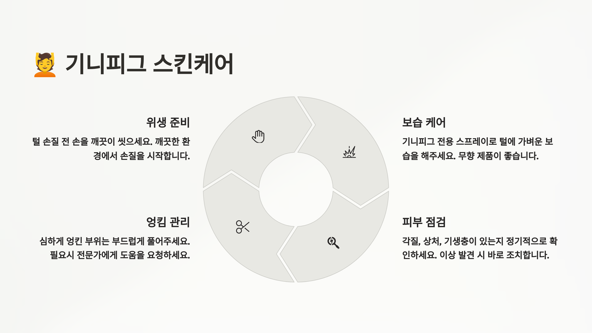 기니피그의 털 관리는 단순히 미용 차원을 넘어 건강 관리의 핵심이에요. 정기적인 브러싱은 털뭉침을 방지하고 피부 건강을 유지하는 데 필수적이랍니다. 특히 장모종 기니피그는 매일 브러싱이 필요하며, 적절하지 않은 관리로 인해 털이 엉키면 피부염까지 발생할 수 있어요. 이 가이드를 통해 우리 기니피그에게 맞는 완벽한 털 관리법을 배워보세요!