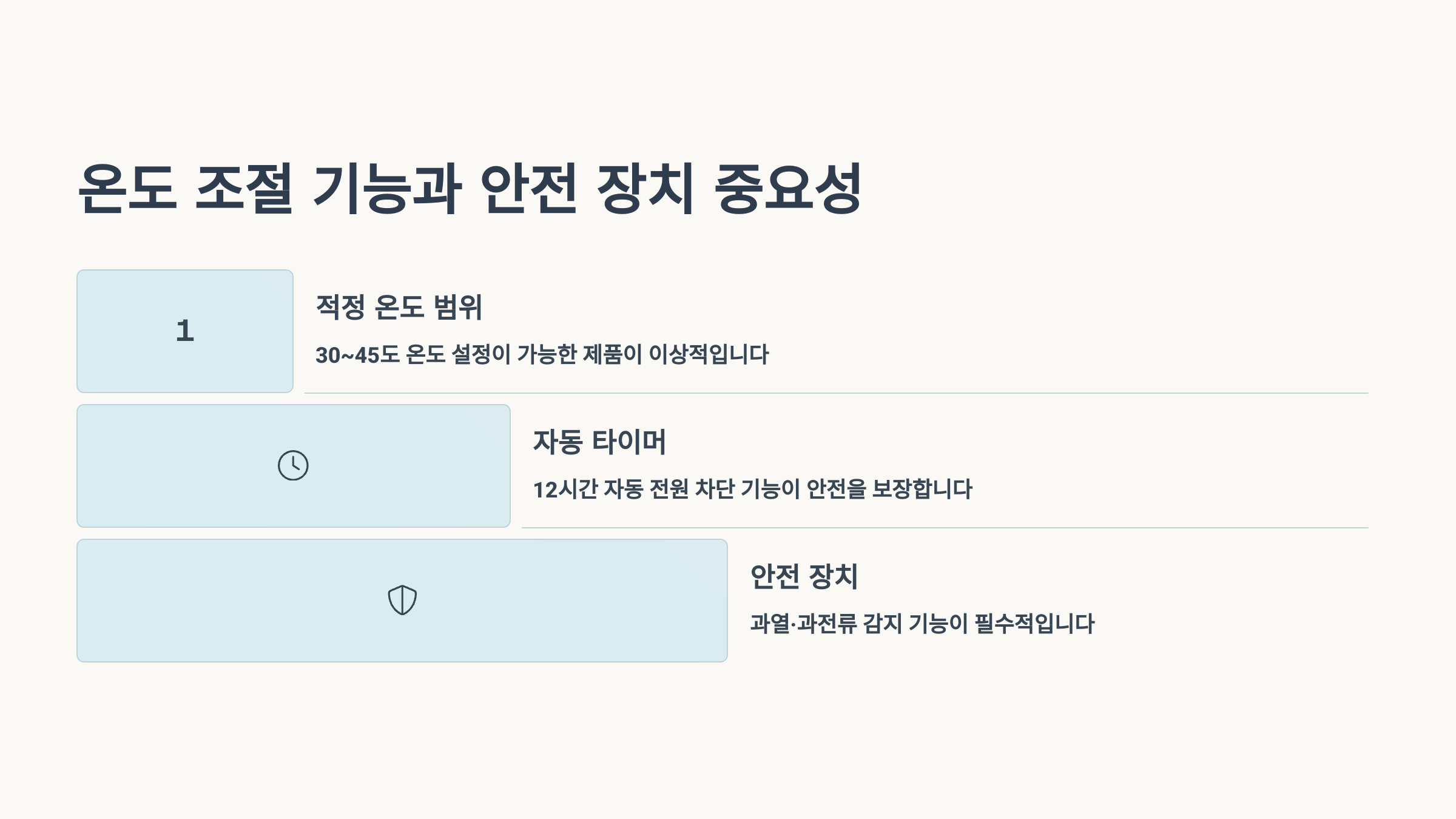 이런 안전 장치들이 제대로 갖춰진 제품을 선택하면 안심하고 사용할 수 있어요. 조금 비싸더라도 안전 기능이 충실한 제품을 선택하는 게 현명한 선택이에요! 🌡️