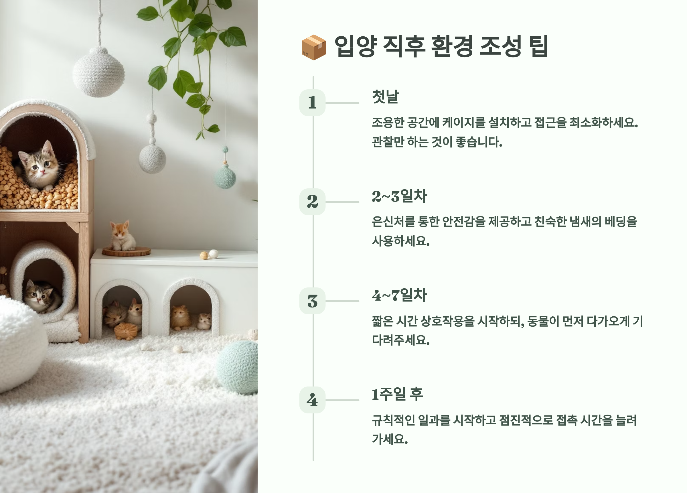 - 📦 입양 직후엔 손대지 말고 조용한 환경 제공이 중요!