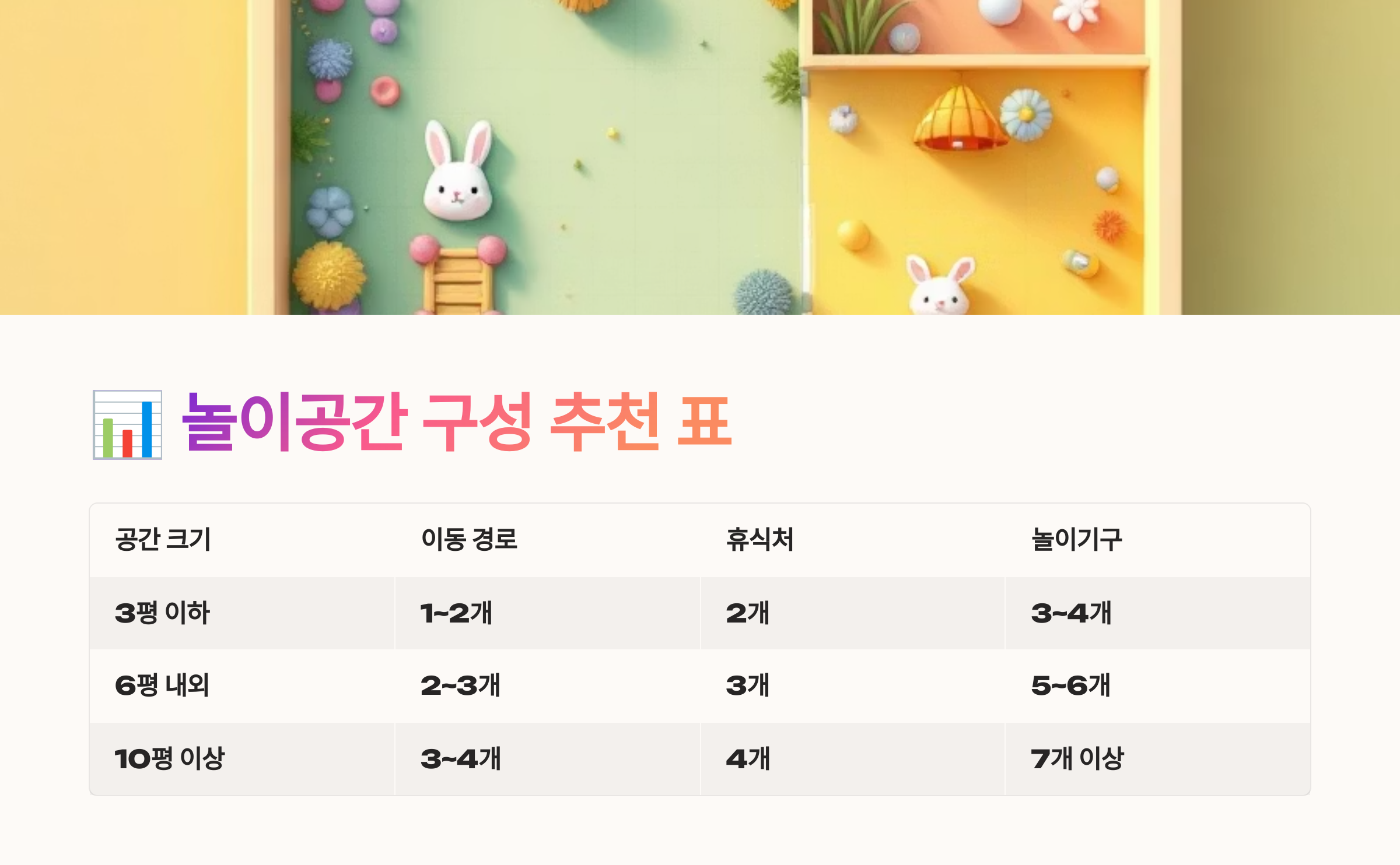 📊 지금까지 소개한 내용을 바탕으로, 토끼에게 최적의 놀이공간을 구성할 수 있도록 간단하고 보기 쉬운 표로 정리해봤어요! 🏡🐇