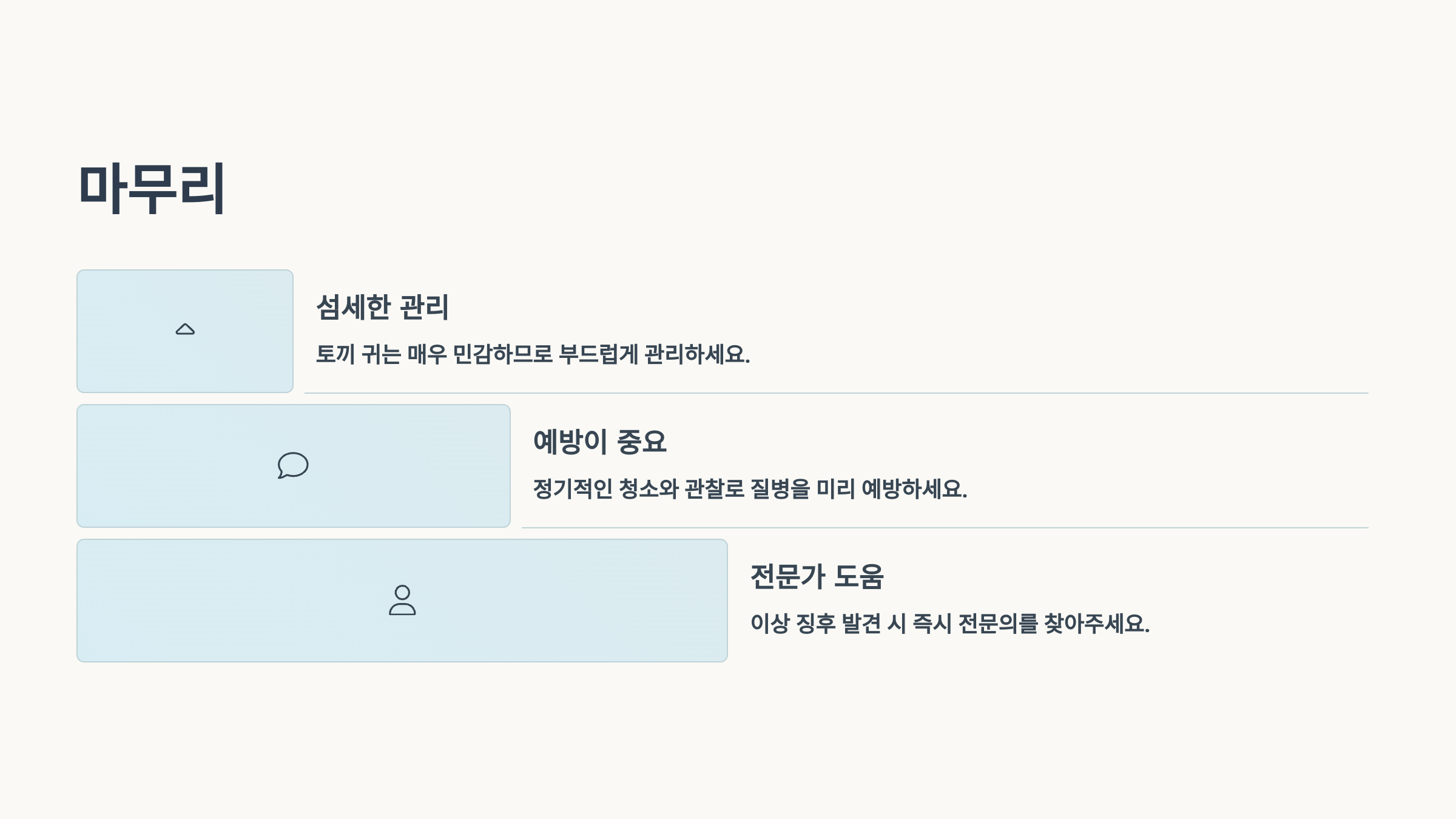 2025. 6. 13. 17:00소동물 케어