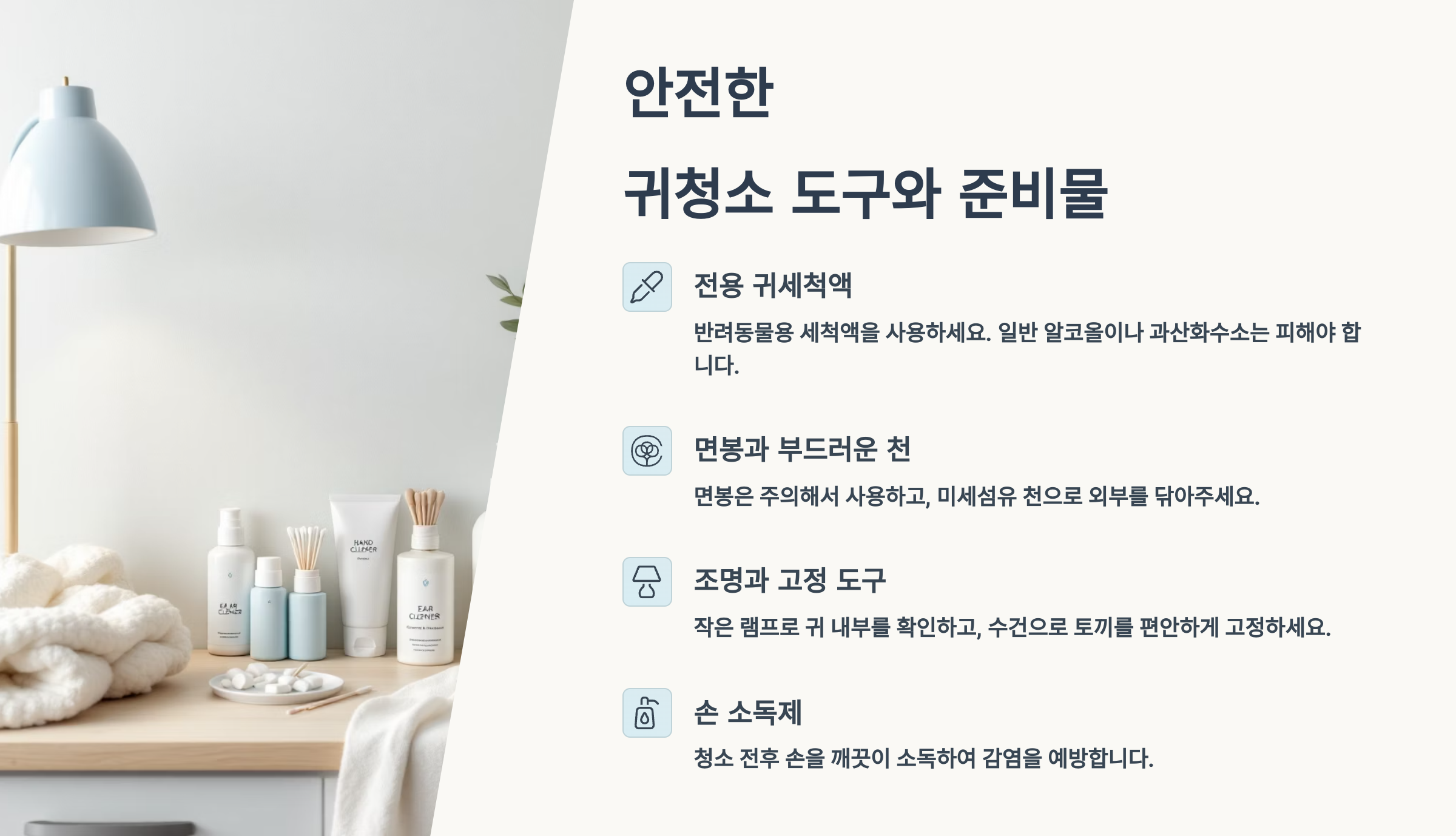 토끼 귀청소를 위해서는 적절한 도구 선택이 무엇보다 중요해요. 절대로 면봉이나 이쑤시개 같은 뾰족한 도구는 사용하면 안 돼요. 이런 도구들은 토끼의 섬세한 귀를 다치게 할 수 있거든요. 대신 부드러운 거즈나 코튼 패드를 사용하는 것이 안전해요. 거즈는 일회용으로 사용하고, 한 번 사용한 거즈는 재사용하지 말아야 해요.