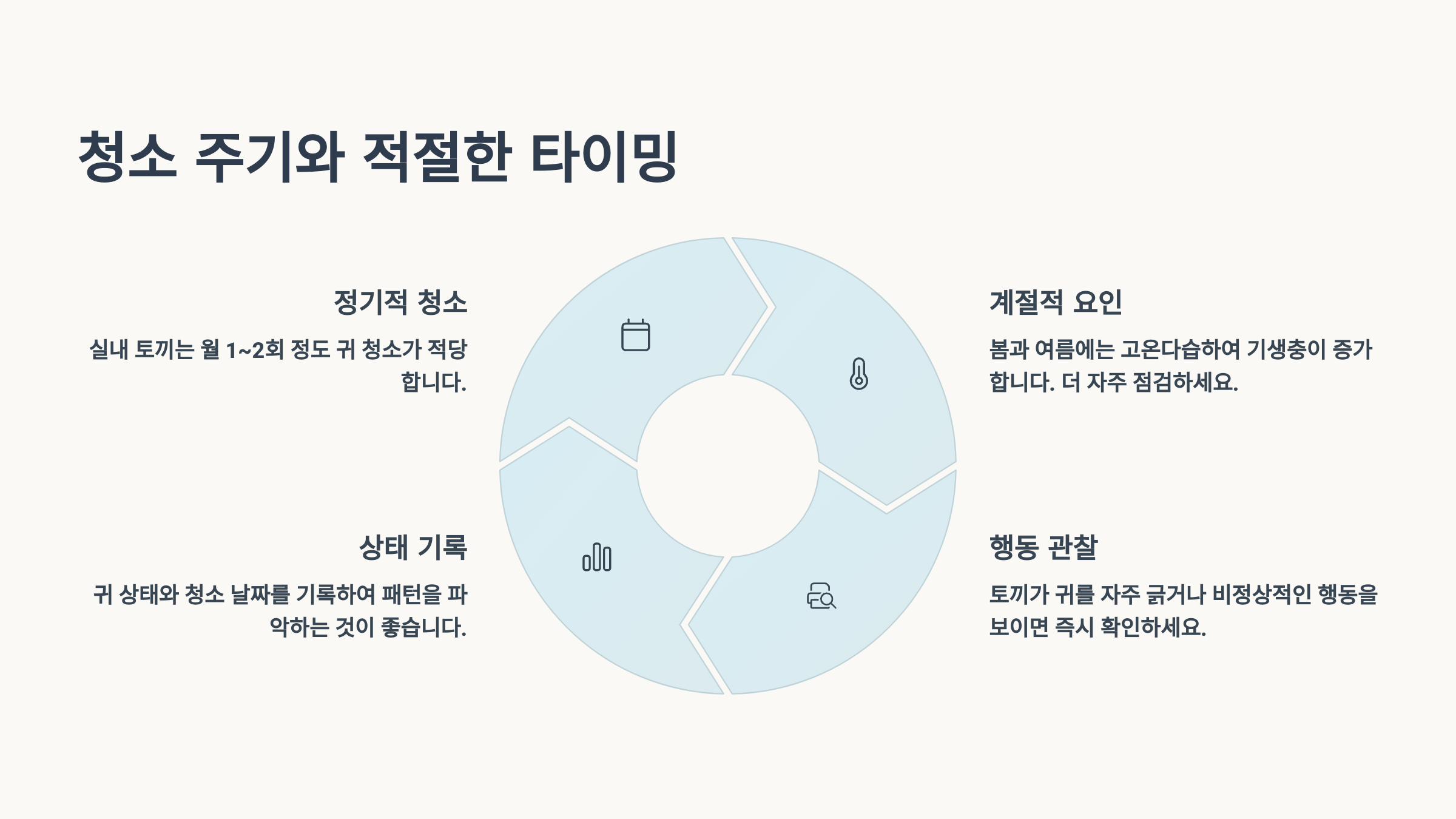 계절별 특성을 고려한 맞춤 관리가 토끼 귀 건강의 핵심이에요. 📊