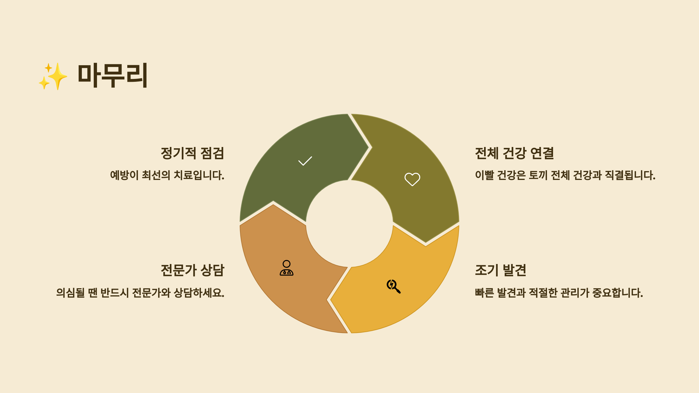 이빨 문제의 원인을 미리 알고 예방하는 것이 가장 중요해요. 작은 관심이 큰 차이를 만들어요! ⚠️