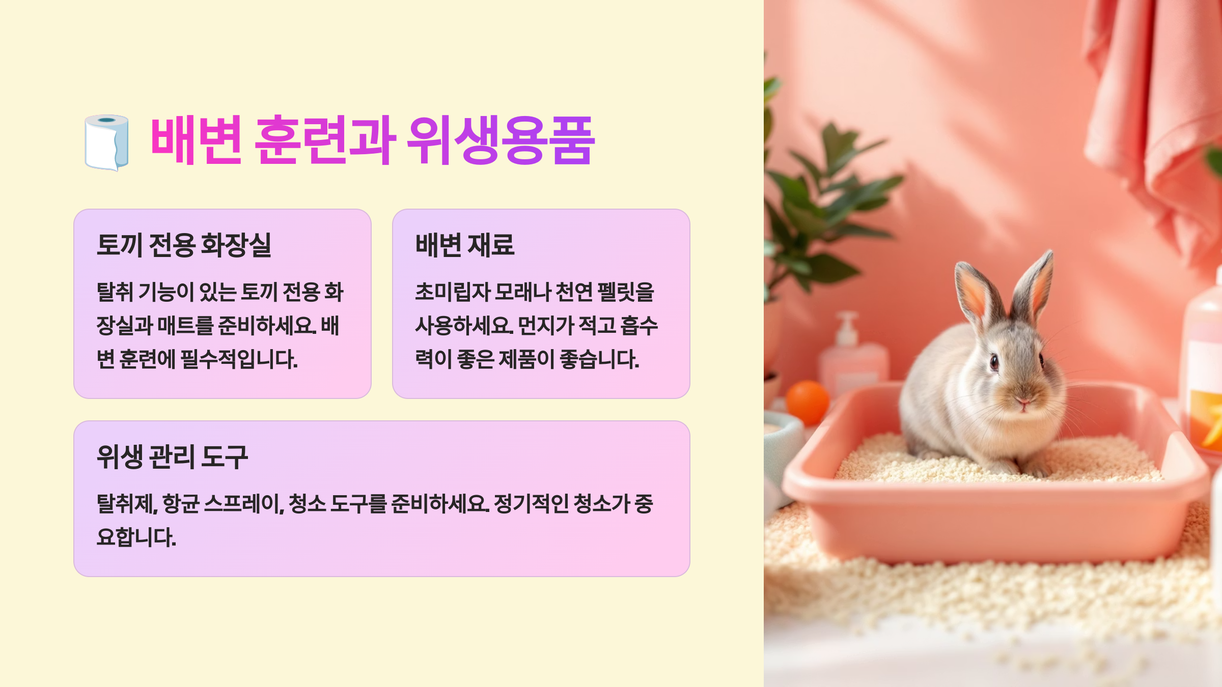 다음은 배변 훈련과 위생용품 준비에 대해 알려드릴게요! 🧻🐰