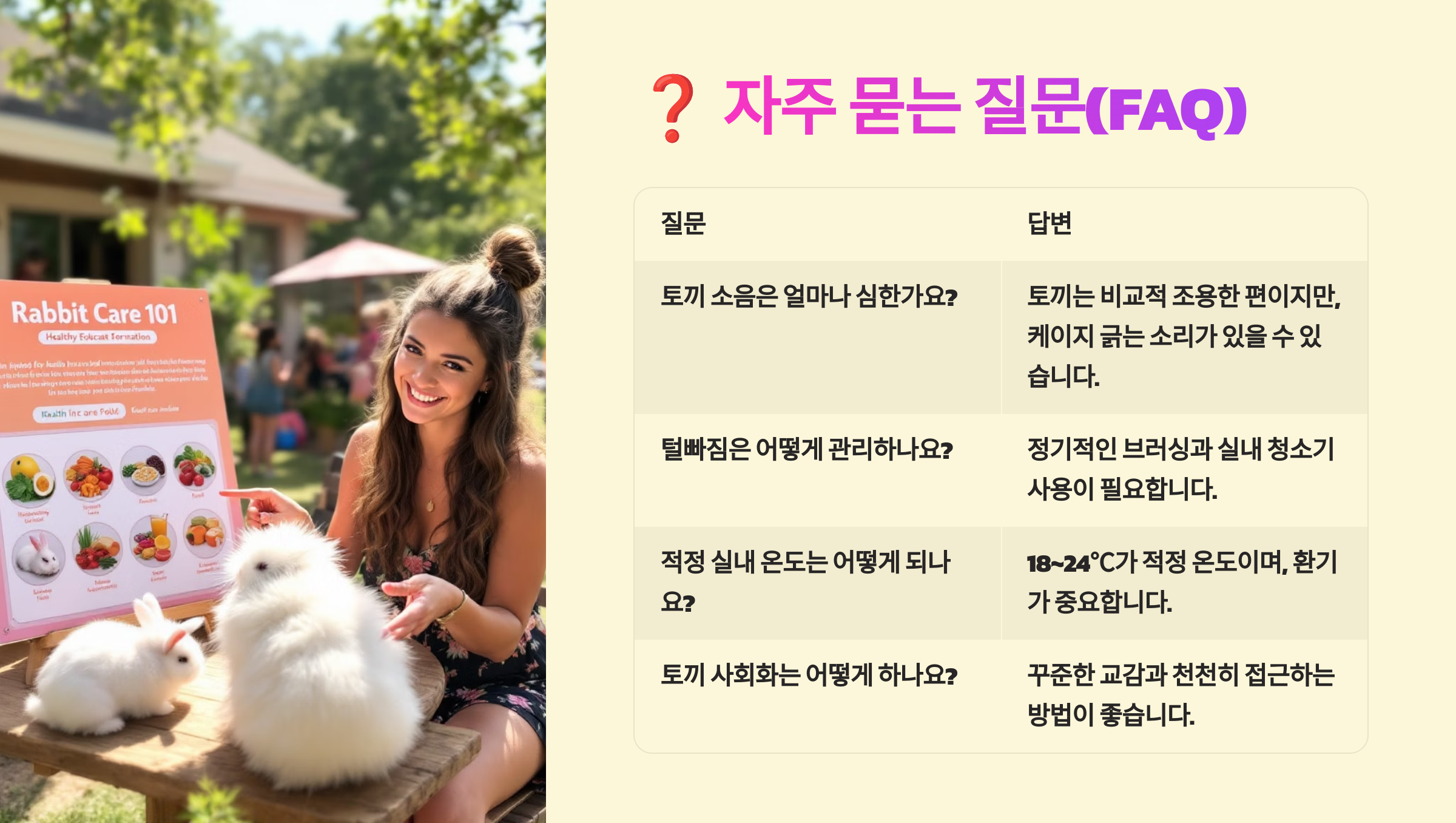 이제 가장 궁금한 초보자들이 자주 물어보는 토끼 입양 FAQ 8가지를 정리해드릴게요! 🐰❓📋