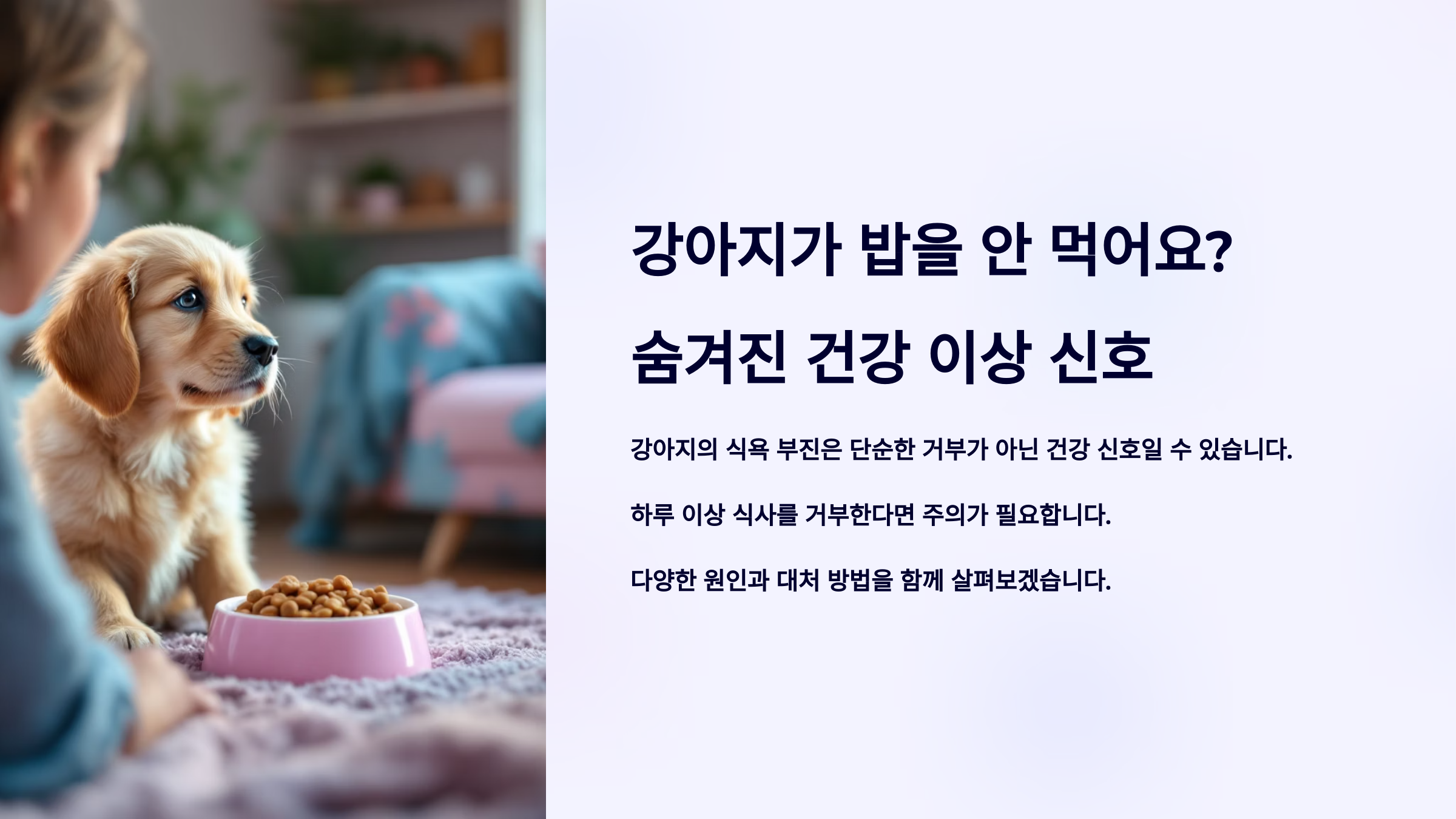우리 아이가 갑자기 밥을 안 먹는다면, 그건 몸속의 소리 혹은 마음의 말일 수 있어요. 그 신호를 놓치지 않는 보호자가 되는 게 가장 큰 사랑 아닐까요? 🐾💛