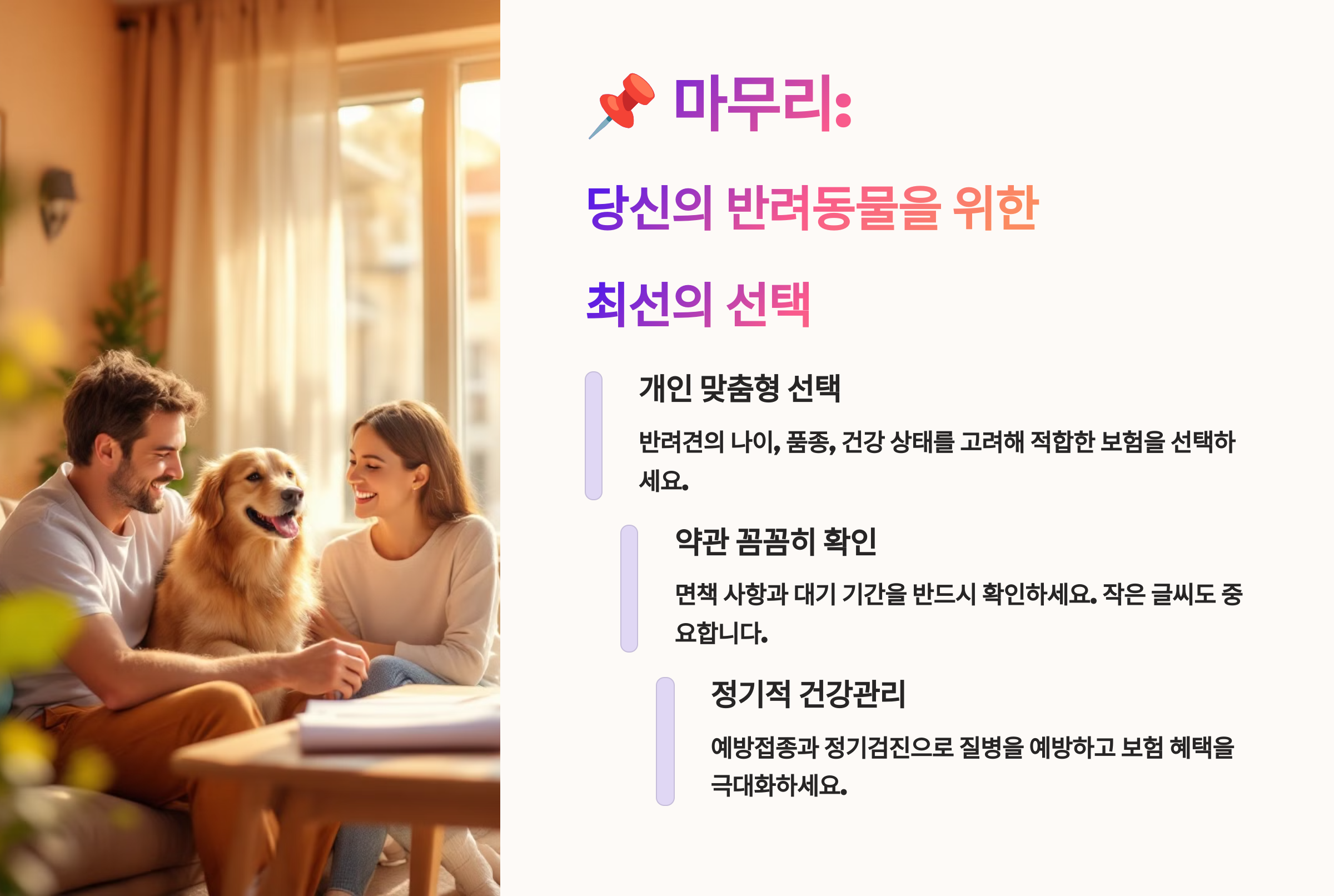 🐾 TIP! 보험 선택 후엔 바로 반려동물 등록번호, 진료 기록 캡처, 주로 가는 병원 정보도 정리해두면 청구할 때 스트레스 없이 진행할 수 있어요. 💡