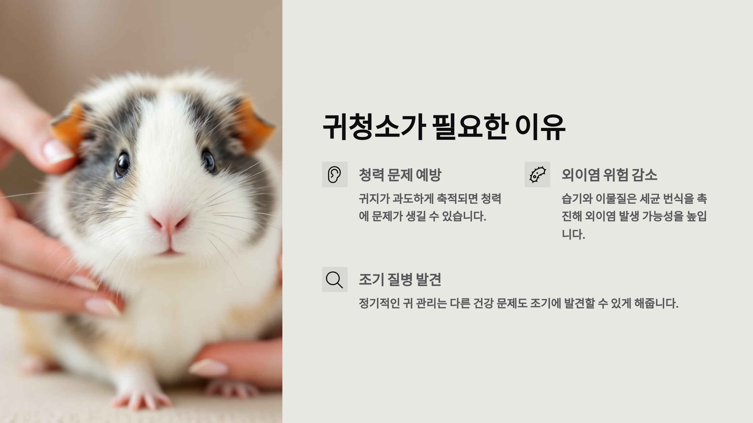 🐹 기니피그 귀청소, 잘못하면 외이염 됩니다|안전하게 관리하는 법 정리