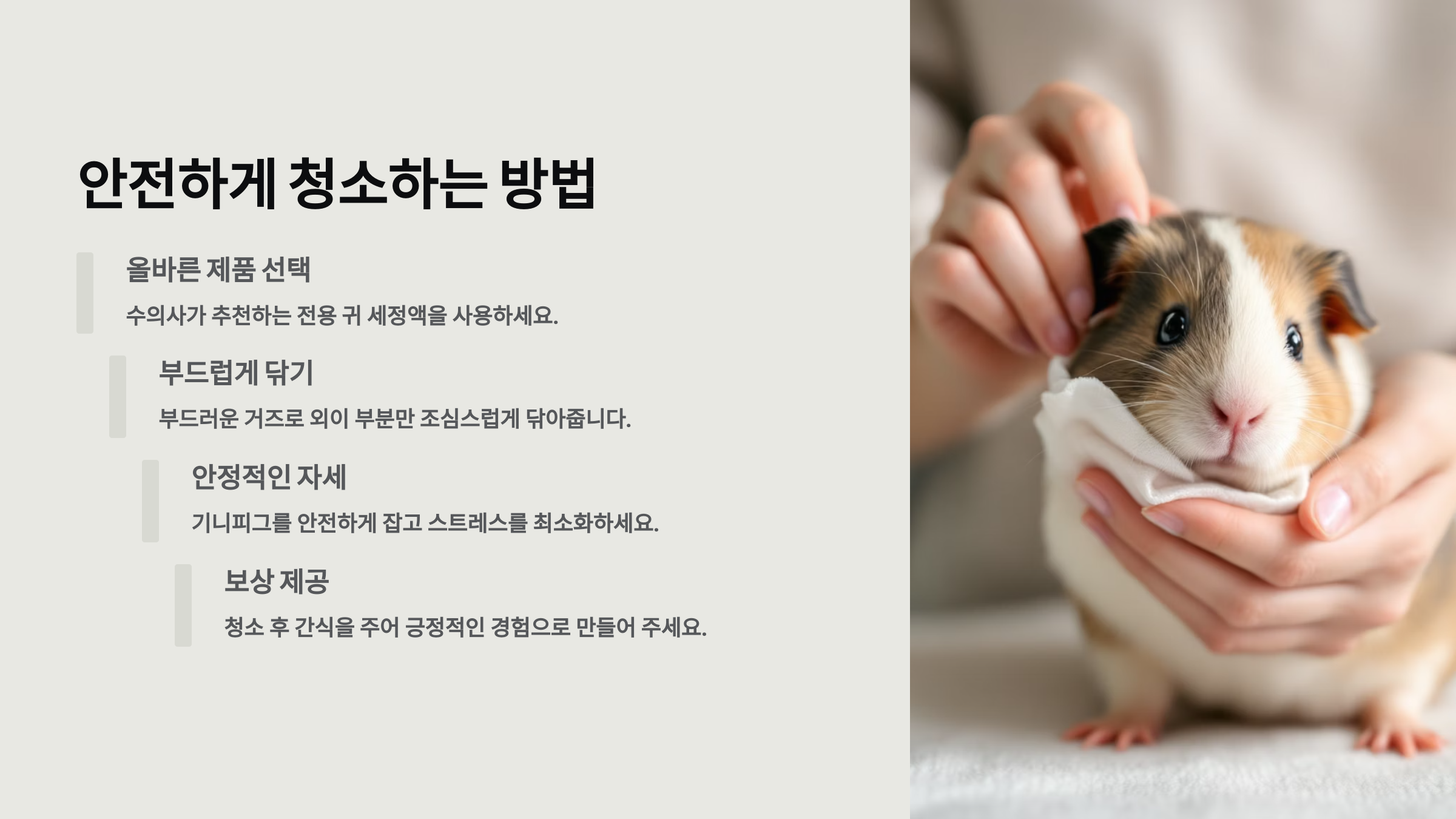 📋 기니피그 귀청소 안전 단계 요약표