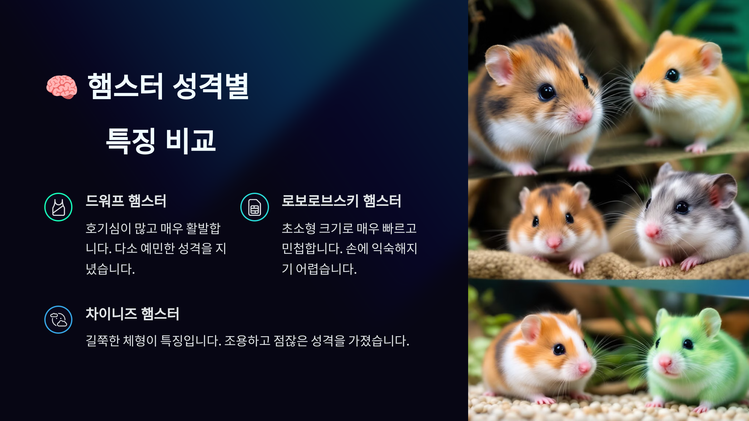 다음은 각 햄스터의 🧠 성격별 특징 비교로 이어집니다!