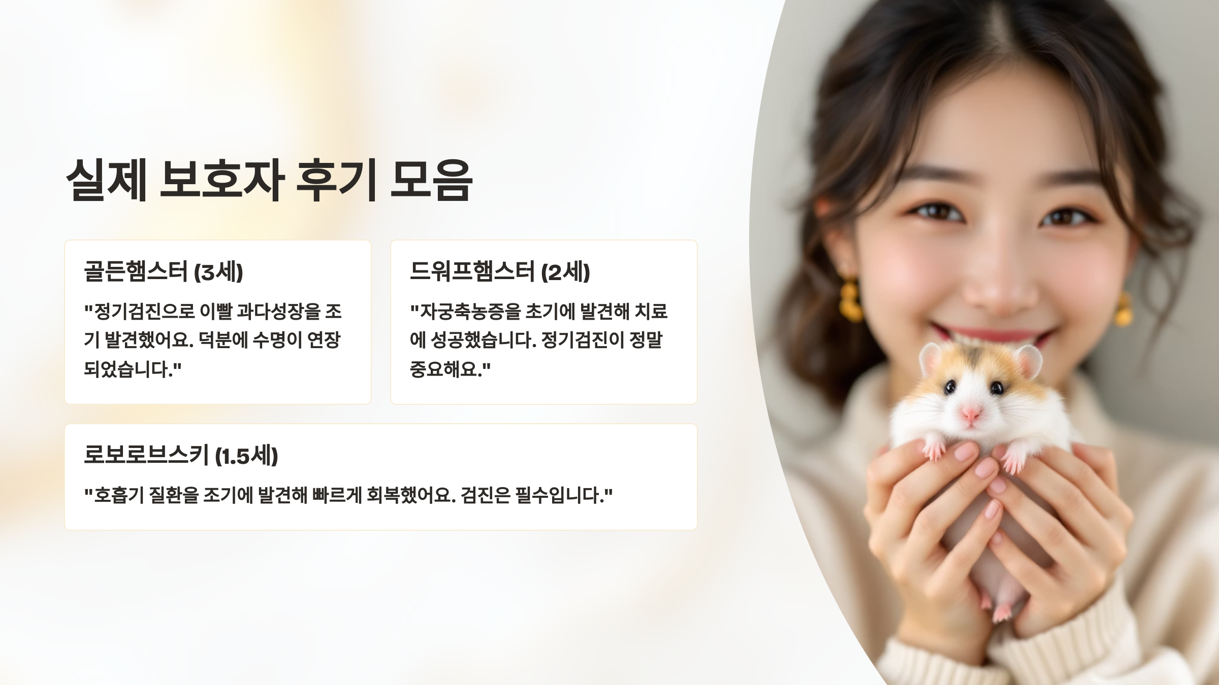 햄스터는 몸이 작아서 검사 하나도 조심스러울 수밖에 없어요. 그래서 병원에 다녀온 보호자들의 후기와 평가는 예비 보호자들에게 정말 큰 도움이 돼요! 🐾