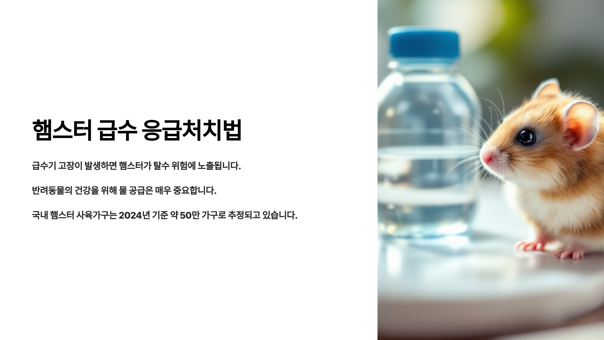 🩺 햄스터는 작지만 섬세한 생명이에요. 물 한 방울에도 생사가 달렸다는 걸 잊지 말고, 수분 보충만큼은 항상 예비책을 준비해두자구요!